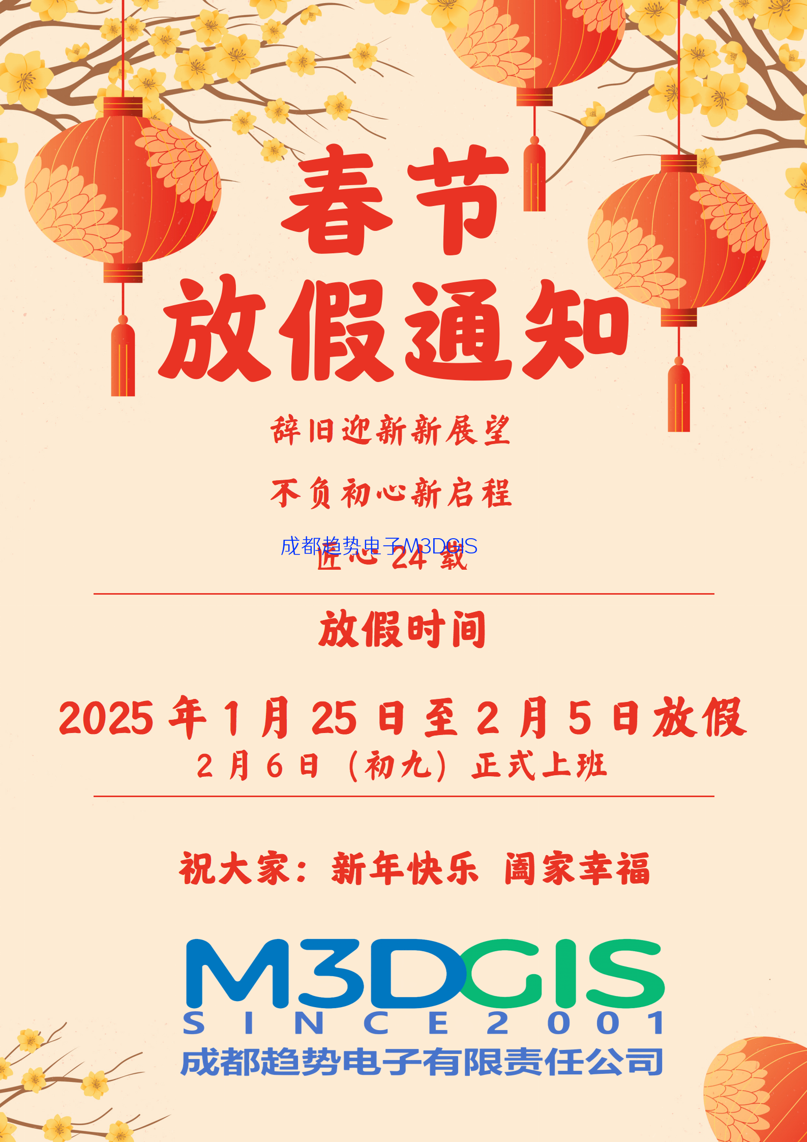 2025年春節(jié)放假通知!祝大家身體安康!闔家辛福!工作順利!
